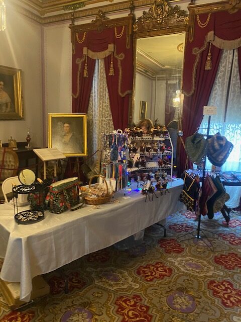Several vendors were set up throughout the historic rooms of the mansion, each offering unique handmade goods ranging from seasonal décor and gifts to jewelry, art, and specialty crafts.